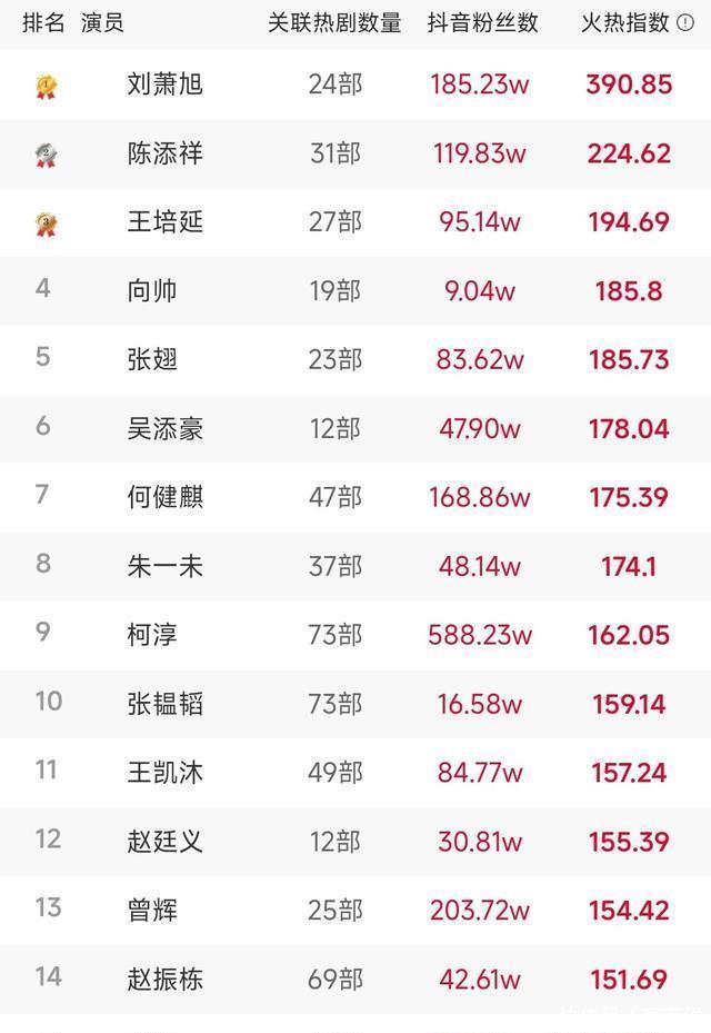 还是新人有看头,看看最新的演员排名。 15、沉思 沉思一月前火过一阵,现在又掉下来了,和赵佳的新剧《唯她是图》也没有一点水花,他还是和韩雨彤比较配,《老公请和我恋爱吧》和《月光锈》都挺好看的。